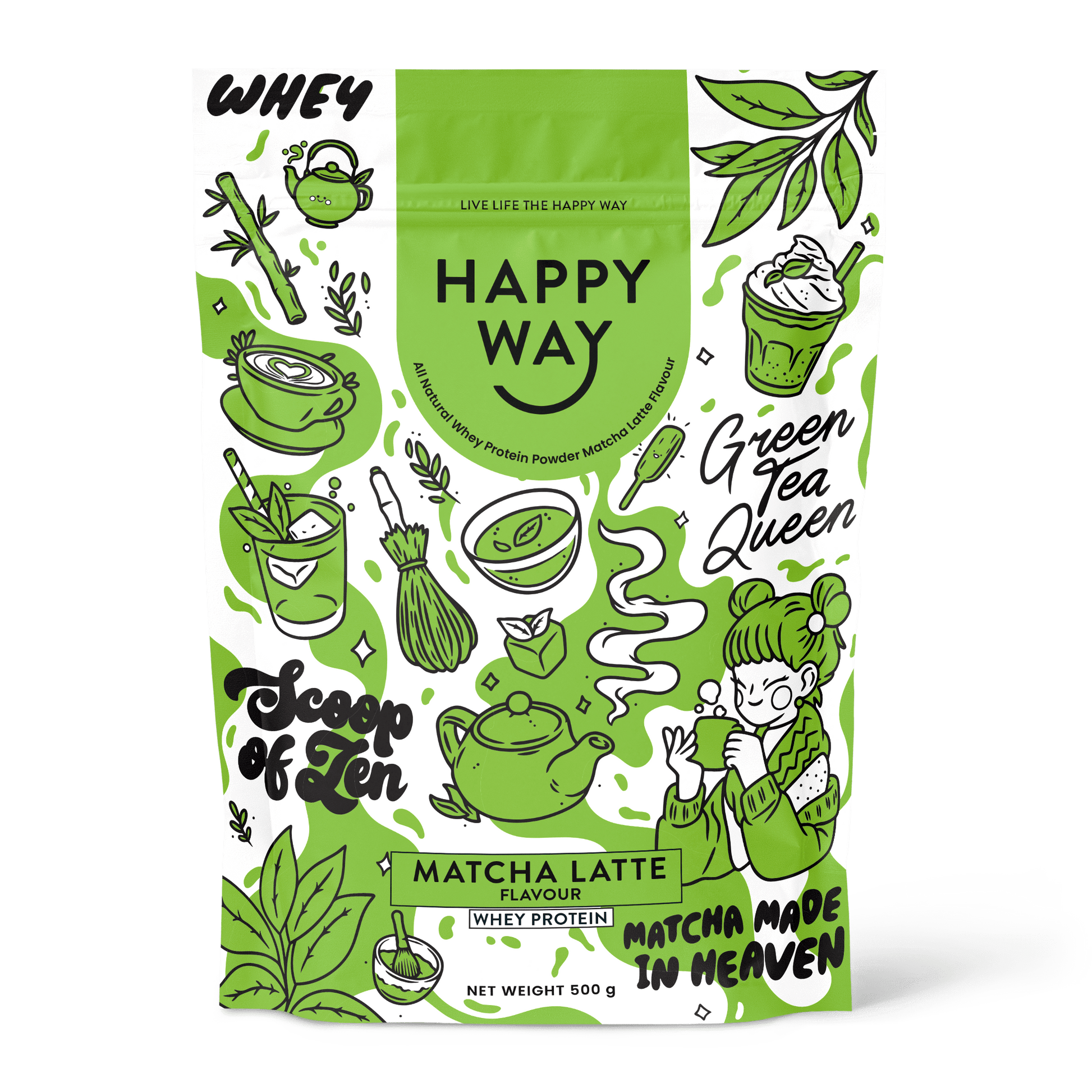 - 60g Happy Way Matcha Latte Whey Protein