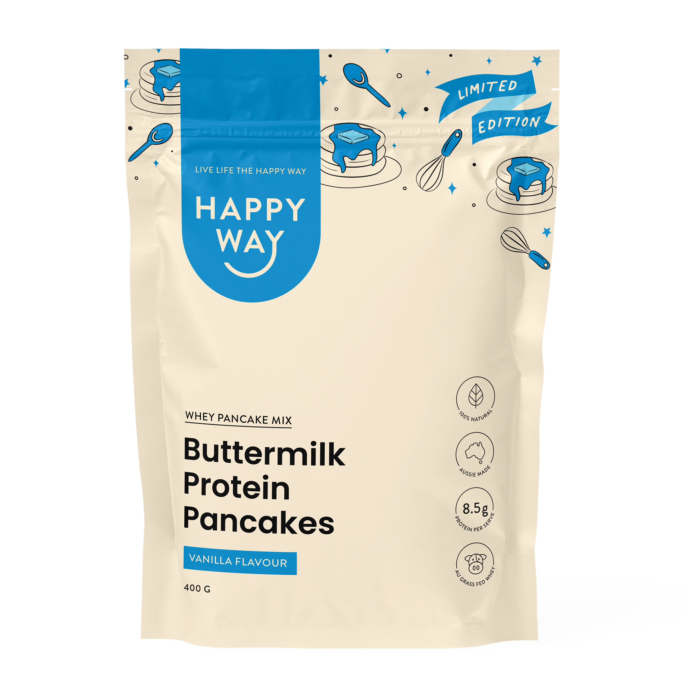- 1 packet of Happy Way Vanilla Buttermilk Protein Pancake Mix