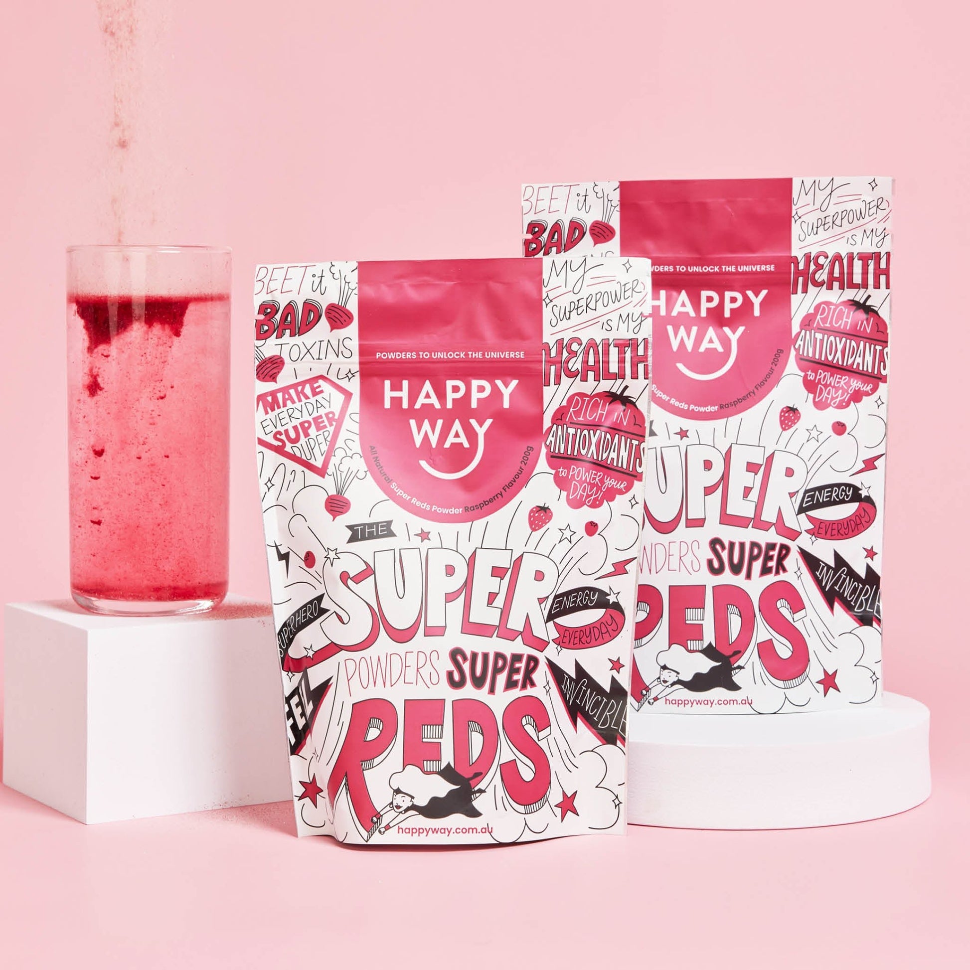 Designed to boost energy levels, protect your immunity and help rid the body of toxins, our 100% natural Super Reds is a convenient all-in-one blend full of berries, antioxidant-rich superfoods, and pre and probiotics. Delicious on its own or in your smoothies, it’s a convenient way to get all the vitamins and nutrients you need to power through your day, as well as enhance and encourage healthy, glowing skin.