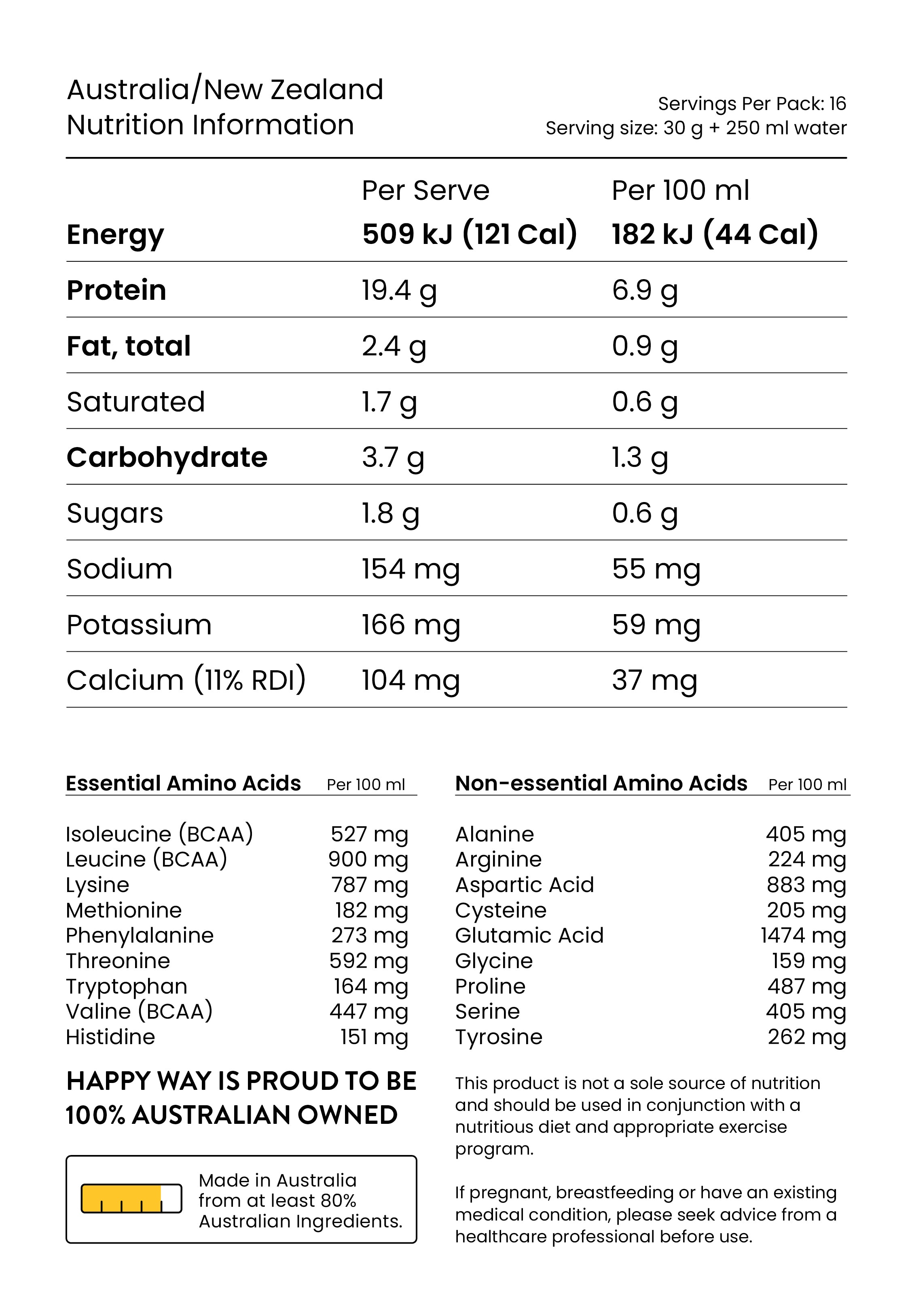 Combine two heaped tablespoons (30 g) with water or your milk of choice, mixing well in a shaker or blender to create a delicious shake or smoothie. Alternatively, add 30 grams to your morning oats, natural yoghurt or baked goodies. For optimal results, enjoy twice a day.