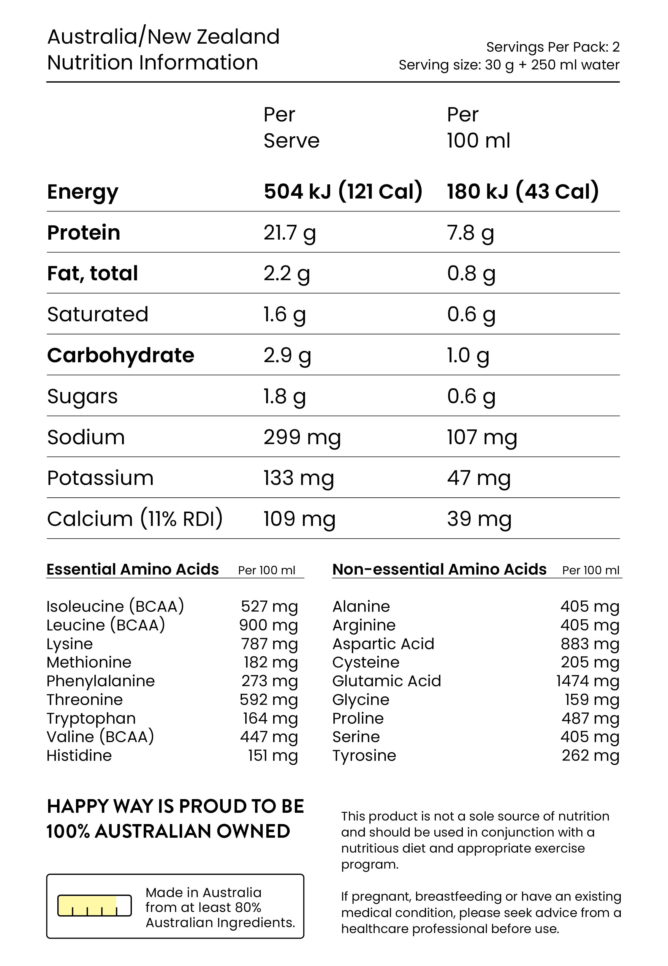 Combine two heaped tablespoons (30g) with water or your milk of choice, mixing well in a shaker or blender to create a delicious shake or smoothie. Alternatively, add 30 grams to your morning oats, natural yoghurt or baked goodies. For optimal results, enjoy twice a day.